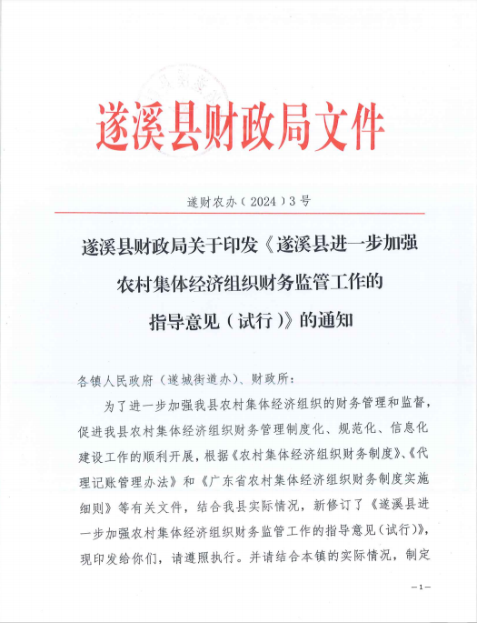 关于印发《遂溪县进一步加强农村集体经济组织财务监管工作的指导意见(试行)》的通知(遂财农办﹝2024﹞3号).pdf