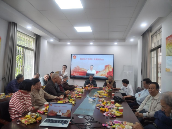 会议伊始,组织全体老干部集中观看由中组部老干部局会同广东省委老干部局录制的第29场全国离退休干部网上专题报告会视频。老同志们认真聆听,增进知识。