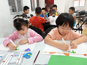 活动伊始,授课老师通过图片、视频等方式让孩子们去了解葡萄的样子及给孩子们分享“狐狸与葡萄”的故事。随后,在志愿者的引导下,孩子们发挥自己的想象力,通过卷、粘、绘画等方式创造出属于自己独一无二的作品。