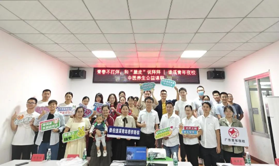为帮助上班族消除“班味”,远离职场病,保持饱满的战斗力,健康快乐工作,遂溪青年夜校联合广东医科大学附属医院遂溪医院,于11月13日晚在县青少年宫开展“青春不打烊,和‘脆皮’说拜拜”青年夜校中医养生公益课程,为上班族带来“健康锦囊”,课程涵盖中医的基本理论、养生知识和实用技巧。40余名青年,团县委副书记陈煜,广东医附院遂溪医院纪委委员、纪检监察科科长、团委书记郑青梅参加活动。