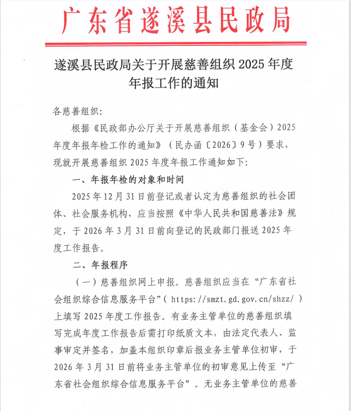 遂溪县民政局关于开展慈善组织2025年度年报工作的通知