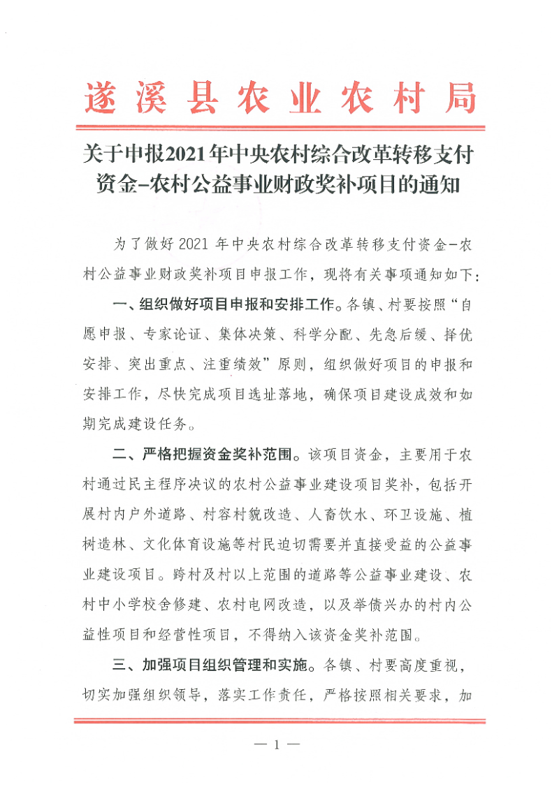 关于申报2021年中央农村综合改革转移支付资金-农村公益事业财政奖补项目的通知