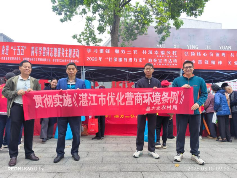 为了优化营商环境,遂溪县农业农村局以“营商环境宣传月”为契机,紧扣社会信用体系建设这一核心抓手,将弘扬雷锋精神、“3·15”国际消费者权益日暨诚信教育宣传与优化营商环境工作深度融合,扎实开展系列宣传活动,推动诚信文化厚植人心、营商理念落地生根。