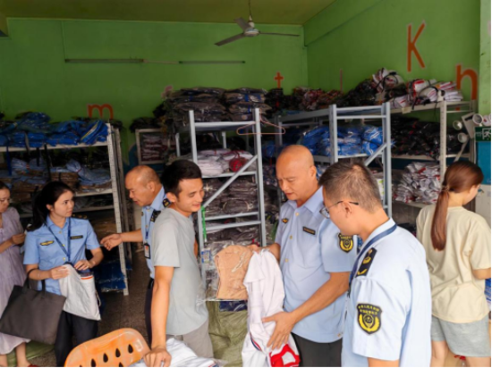 9月3日,遂溪县市场监督管理局党组成员、副局长王小林带领质量发展与认监股、遂城所、中心所执法人员,认真落实每周“两查一报”的工作要求,聚焦辖区内各中小学周边文具店、服装店、校服销售点等经营主体,开展校服质量专项检查,推进校服产品质量专项整治工作。