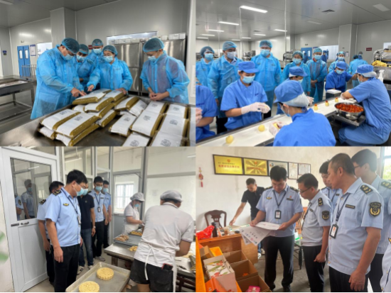 在食品生产环节,检查人员向企业负责人了解当前月饼的生产销售情况,详细核查原料进货台账、添加剂使用记录、产品标签标识等,认真检查企业是否落实“日管控、周排查、月调度”制度,督促食品生产企业严格落实原辅料进货查验、产品出厂检验、销售台账记录等制度,严格排查无证生产或不符合国家标准的月饼等相关食品的包装,依法严厉打击“两超一非”、掺杂掺假以假充真等违法行为。