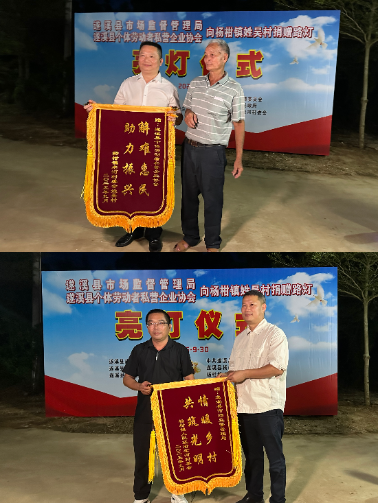 姓吴村成功亮灯,是遂溪县政协履职为民、遂溪县市场监督管理局主动融入乡村发展大局、遂溪县个私协会践行企业担当的实际行动,也是政企同心服务民生、共绘乡村振兴蓝图的生动实践。未来,县政协、县市场监管局、县个私协会将继续携手,聚焦乡村发展需求,推出更多惠民举措,为推动乡村全面振兴贡献更多力量。