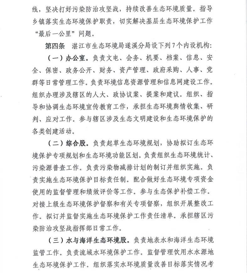湛江市生态环境局遂溪分局机构设置