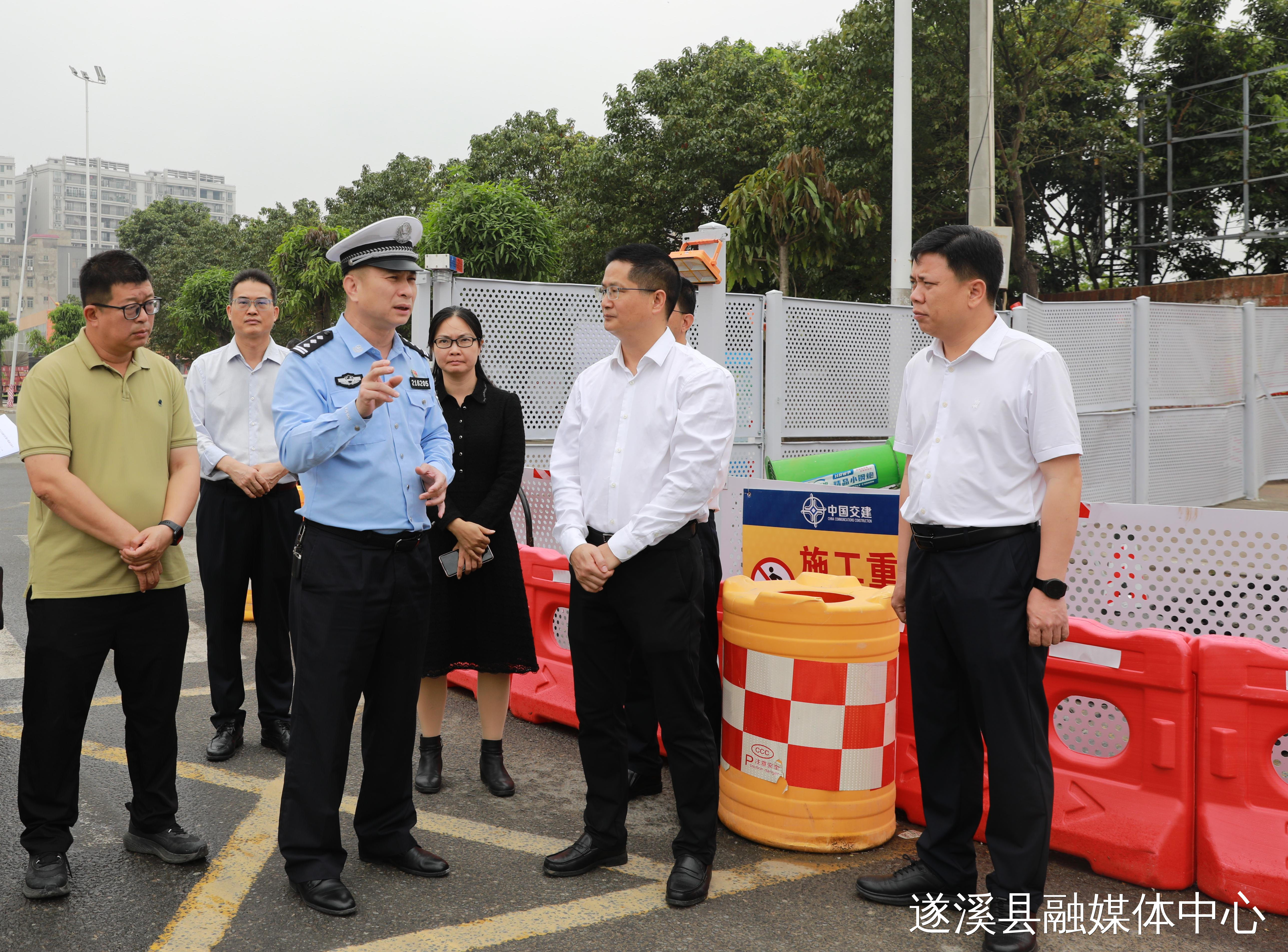在遂城街道站南路与文仓路交汇路口,骆华庆详细了解该路段存在的交通安全隐患,认真听取整治措施。他强调,道路交通安全事关群众切身利益,必须把隐患整治工作抓实抓细,科学设置交通标识和减速设施,加强重点时段巡查管控,切实保障群众出行安全。