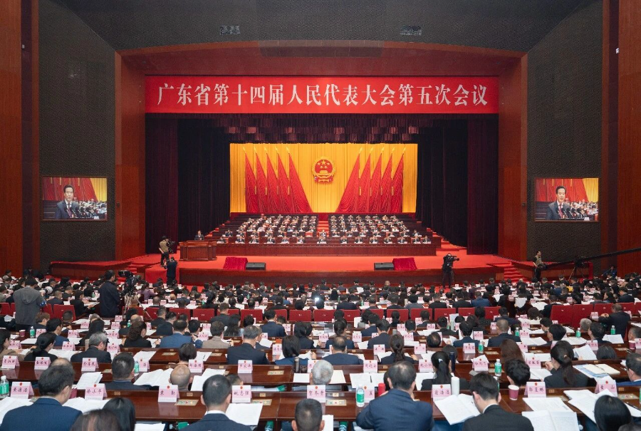 1月27日下午,广东省第十四届人民代表大会第五次会议举行第二次全体会议。 1月27日下午,广东省第十四届人民代表大会第五次会议举行第二次全体会议。省委书记黄坤明,省委副书记、省长孟凡利,省政协主席林克庆出席会议。省人大常委会主任黄楚平作省人大常委会工作报告,省法院院长张海波、省检察院检察长冯键分别作法院、检察院工作报告。会议由大会主席团常务主席、执行主席黄宁生主持。 大会执行主席张弓、马正勇、唐屹峰、王衍诗、戴运龙、韦皓、卢一先、卢荣春、庄悦群、刘吉、刘胜、何国森、何晓军、余钢、张爱军、陈少荣、陈杰、陈勇、郭文海、逯峰、曾风保、温湛滨在主席台执行主席席就座。 黄楚平在报告中回顾了过去一年省人大常委会主要工作。他说,一年来,省人大常委会坚持以习近平新时代中国特色社会主义思想为指导,全面贯彻党的二十大和二十届历次全会精神,认真学习贯彻习近平总书记对广东系列重要讲话重要指示精神,围绕落实省委“1310”具体部署,打造全过程人民民主省域样板,共审议法规、决定24件,通过19件,审查批准设区的市法规、决定和自治县单行条例66件,备案深圳、珠海、汕头经济特区法规34件,备案审查规范性文件147件;听取审议报告19个,开展执法检查5项、共检查23件法律法规实施情况,开展专题调研8项,作出重大事项决定2件;依法任免国家机关工作人员129人次,圆满完成省十四届人大三次会议确定的目标任务,为广东“十四五”圆满收官提供了坚实制度保证。 1月27日,省十四届人大五次会议举行第二次全体会议。省人大常委会主任黄楚平作常委会工作报告。 黄楚平说,过去一年,省人大常委会坚持以习近平新时代中国特色社会主义思想统揽工作,牢牢把握党对人大工作的全面领导这一最高政治原则,坚决落实省委交办任务,成功召开省十四届人大四次会议,自觉把坚定拥护“两个确立”、坚决做到“两个维护”落实到人大履职工作全过程各方面。 黄楚平说,过去一年,省人大常委会坚持聚焦中心优供给,全面加强立法供给、监督推动、决定支撑。助推新阶段粤港澳大湾区建设,深入实施粤港澳大湾区专项立法计划,制定促进粤港澳大湾区内地九市轨道交通发展条例、粤港澳气象合作发展条例。开展粤港澳大湾区内地九市内涵式高质量发展专题调研并作出决定,全覆盖检查大湾区内地九市和其他7个沿海市岸线保护利用管理情况。助推建设具有国际竞争力的现代化产业体系,作出助力加快建设现代化产业体系的决定,在省委领导下牵头建立省联席会议机制,注重统筹推进、摸清情况、人大协商、靶向发力、法治支撑,聚焦“加快建设现代化产业体系”在省人大历史上首次同步开展专题询问和满意度测评,在全国率先出台现代企业制度建设促进条例,制定促进海洋经济高质量发展条例,开展科技创新条例执法检查,开展民营经济促进法及涉企地方性法规集中清理和制造业高质量发展促进条例贯彻实施情况专题调研,持续推动广清纺织服装产业有序转移园建设。助推经济运行稳中有进,加强计划执行和经济运行情况监督,开展我省“十四五”规划纲要实施、“十五五”规划纲要编制和优化企业出海法律服务供给专题调研,首次听取外事工作服务经济社会发展情况报告,各级政府向人大报告债务管理情况实现省域全覆盖。助推实施“百县千镇万村高质量发展工程”,围绕实现三年初见成效目标,扎实推进县域经济振兴条例立法工作,开展新型农村集体经济发展促进条例执法检查,制定历史文化名城名镇名村保护条例,修改村民委员会选举办法,听取审议推进文旅深度融合发展情况报告等。助推保障和改善民生,制定修改家庭教育促进条例、实施妇女权益保障法办法、华侨权益保护条例、粮食安全保障条例、租赁房屋治安管理规定等,听取审议托育服务发展、老年助餐服务和养老服务人才队伍建设等情况报告,开展新就业形态劳动者权益保障、青少年体育工作情况和公共安全风险防控工作情况专题调研。 黄楚平说,过去一年,省人大常委会坚持强化服务促履职,全面贯彻新修改的代表法,首次召开全省人大代表工作会议,充分发挥人大代表主力军作用。拓展深化“两个联系”,组织1239名代表参加立法、监督等工作,全面推广“民意码上说、实事马上办”等线上履职方式。扎实开展代表主题活动,全省12.9万名代表共植树120.6万株,接待群众13.9万人次,共12.88万名代表参加7月集中履职活动,收集群众意见建议3.46万件,当月推动落实2.7万多件。推深做实“两个高质量”,首次在省人大会议期间举办建议“提办对接”现场活动,首次建立“一建议一群组”办理工作机制,省十四届人大三次会议期间代表提出的2项议案、1046件建议,均已办理完毕。加强代表履职能力建设,制定加强直接选举人大代表报告履职情况工作的指导意见,举办9期426人次省人大代表专题培训班,实现本届省人大代表履职学习全覆盖。 黄楚平说,过去一年,省人大常委会坚持健全机制再出新,做精做实“三常模式”和“三重架构”,丰富全过程人民民主省域样板的内容和形式。深入打造全过程人民民主基层单元,开展基层立法联系点效能“深化拓展年”行动,全面推行“一点一码”、“一法一码”等创新做法,通过联系点收集群众意见建议3200多条,江海、南