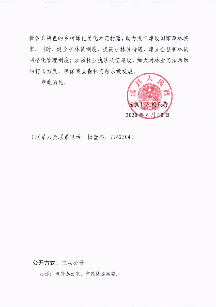 遂溪县人民政府关于政协第十三届湛江市委员会第四次会议第20200014号提案会办意见的函