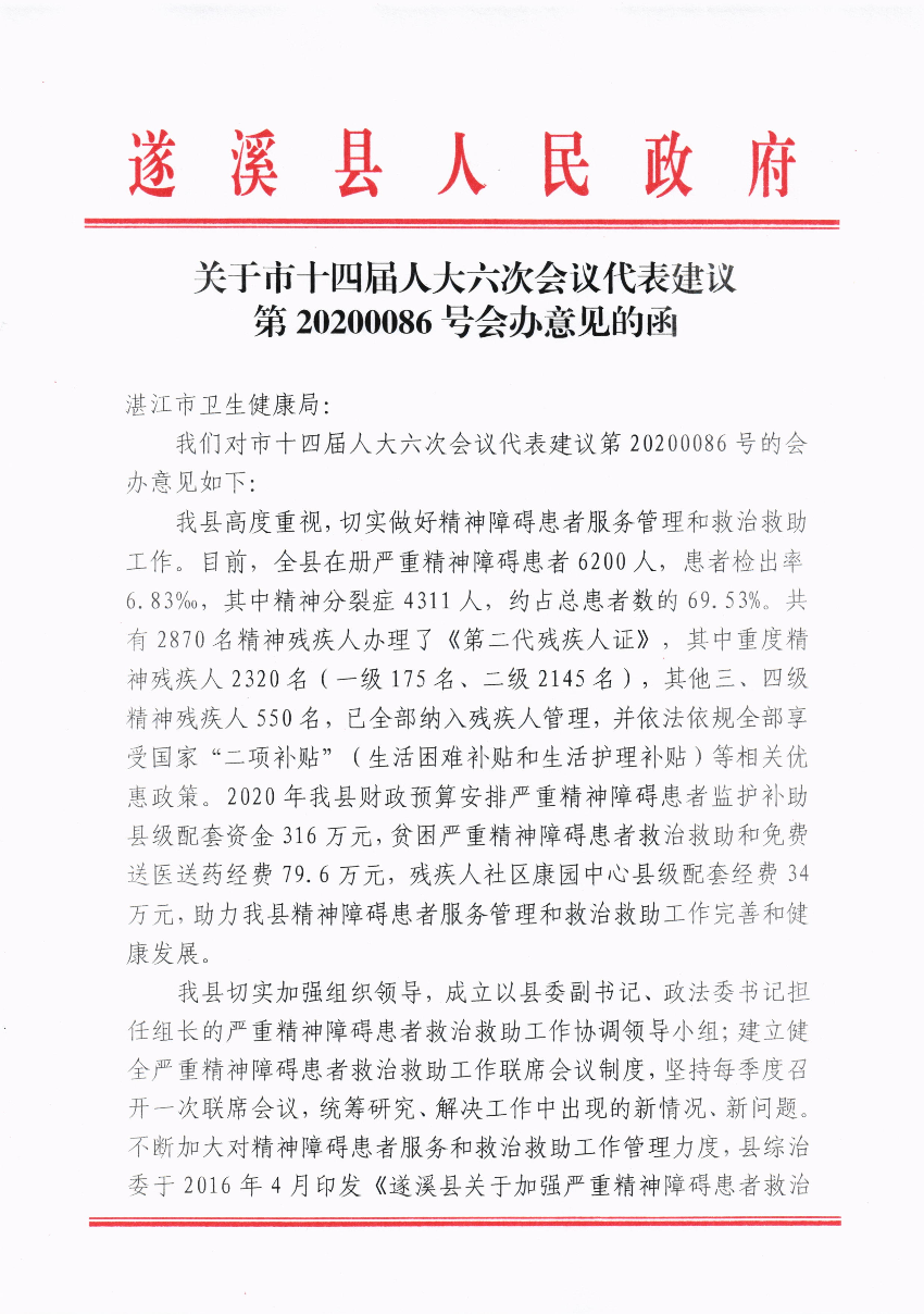 关于市十四届人大六次会议代表建议第20200086号会办意见的函