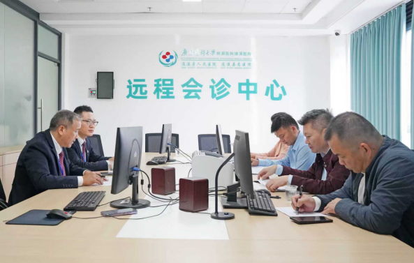 随后进行座谈,人民医院院长邓烈华汇报了三级医院创建在学科建设、医疗服务能力提升等方面取得的阶段性成果,以及紧密型县域医共体建设在资源共享、双向转诊等方面具体实践的情况汇报。据了解,遂溪县在建设紧密型县域医共体方面进展顺利,一是人员统筹方面,已实现对全县15家镇卫生院的全覆盖派驻,并建立医务人员半年轮换机制;二是转诊服务方面,医共体综合事务管理中心运行稳定,累计完成上转患者1000余人次、下转300余人次;三是技术帮扶方面,2025年上半年协助镇卫生院开展新技术70余项,推动3家卫生院实现检查检验数据互联互通;四是专科建设方面,血液净化中心建设稳步推进,创伤救治培训、胸痛单元建设等工作取得实质性进展。