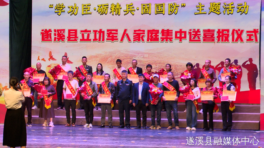 3月13日,由遂溪县委宣传部、遂溪县人武部、遂溪县文广旅体局、遂溪县退役军人事务局主办的 “学功臣·砺精兵·固国防”主题活动在县影剧院举行,通过集中送喜报、欢送入伍新兵等环节,在全县营造关心国防、热爱国防、建设国防、保卫国防的浓厚社会氛围。