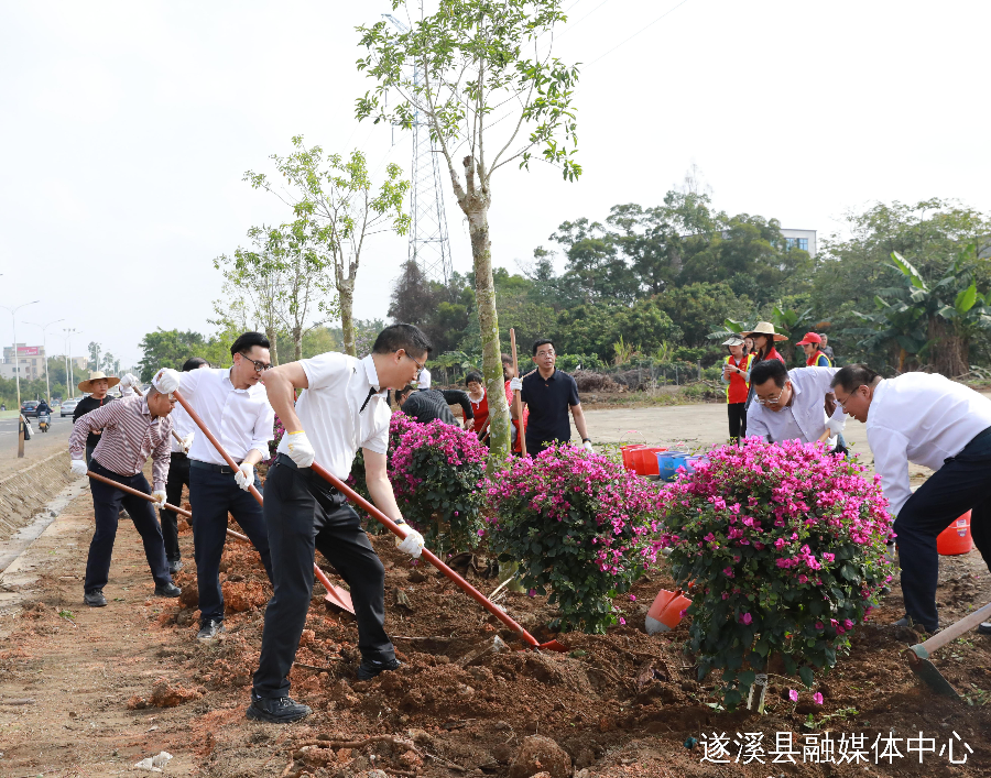 遂溪县副处级干部;县人民法院院长、县人民检察院检察长;县委办、县人大办、县府办、县政协办及县机关事务管理局、县自然资源局、团县委、遂城街道等单位人员参加义务植树活动。