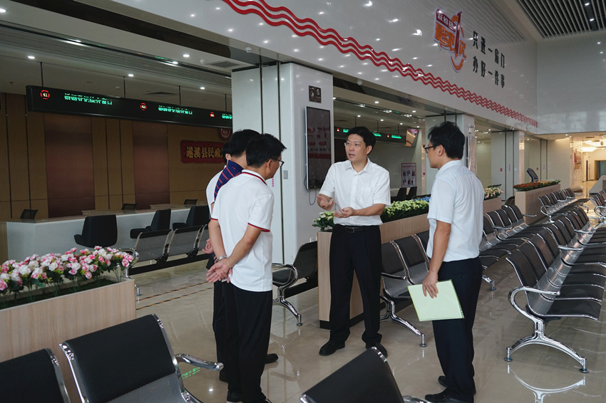 9月3日上午,县委副书记、县长陈政带队到县新政务服务大厅调研考察。县委常委、纪委书记、监委主任阮小远,以及县政府办、县行政服务中心等单位领导参加了活动。