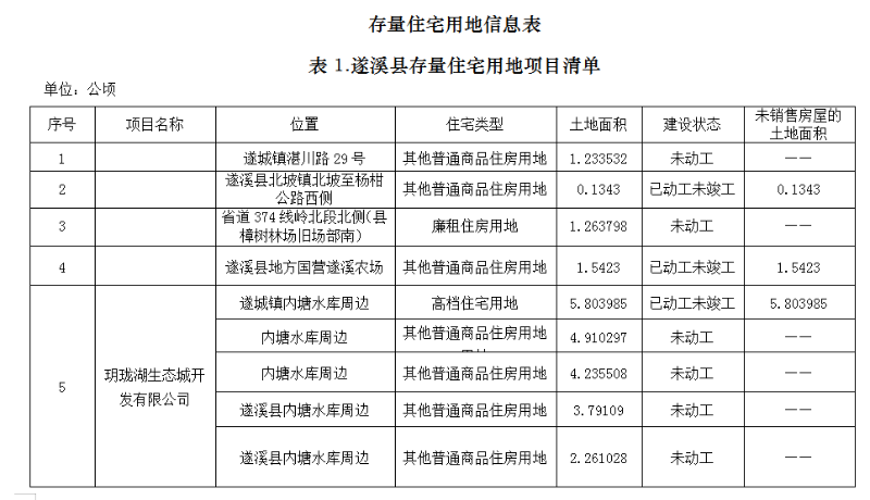 关于遂溪县存量住宅用地信息的公示
