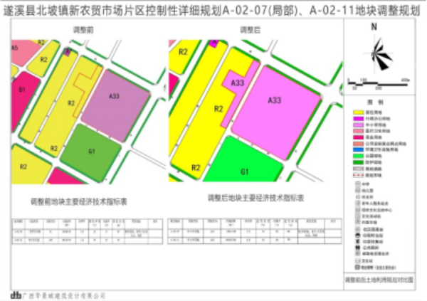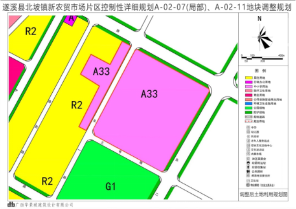 附件:《遂溪县北坡镇新农贸市场片区控制线详细规划A-02-07(局部)、A-02-11地块调整规划》主要图纸。