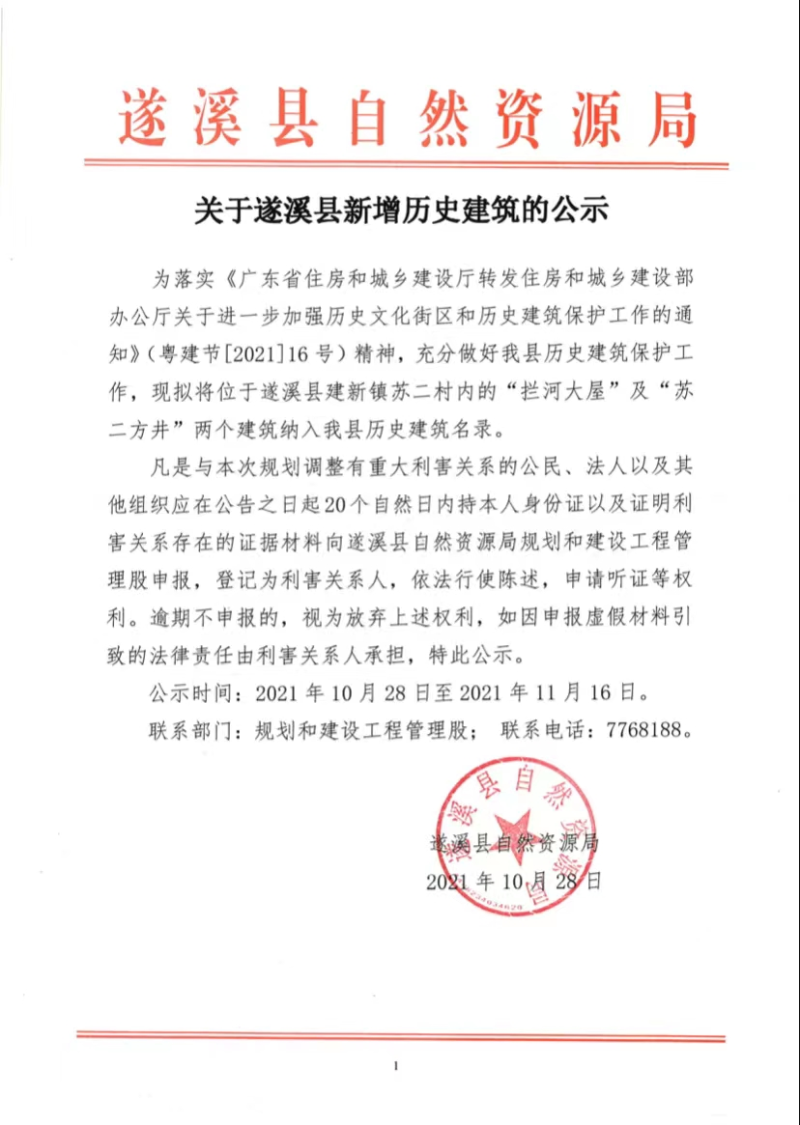 关于遂溪县新增历史建筑的公示