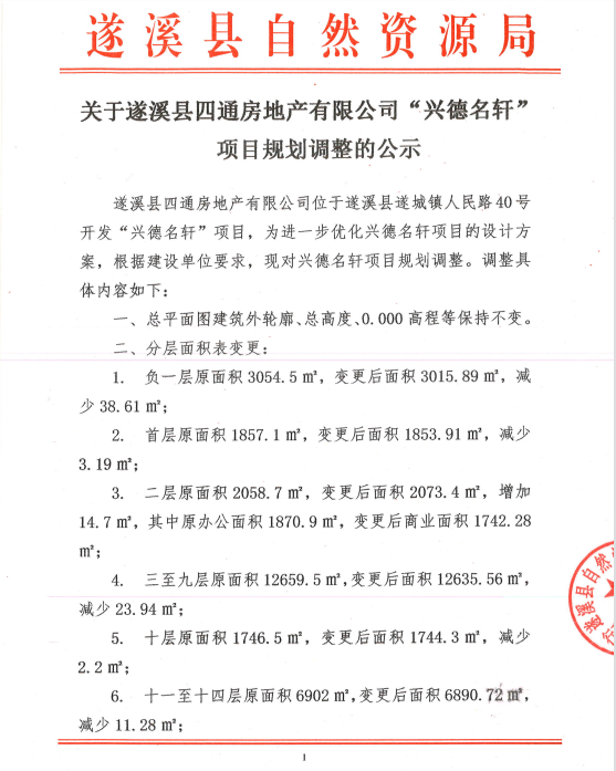 关于遂溪县四通房地产有限公司“兴德名轩”项目规划调整的公示