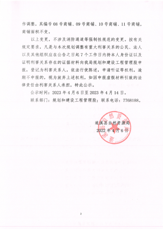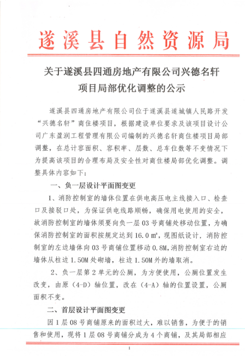 关于遂溪县四通房地产有限公司兴德名轩项目局部优化调整的公示
