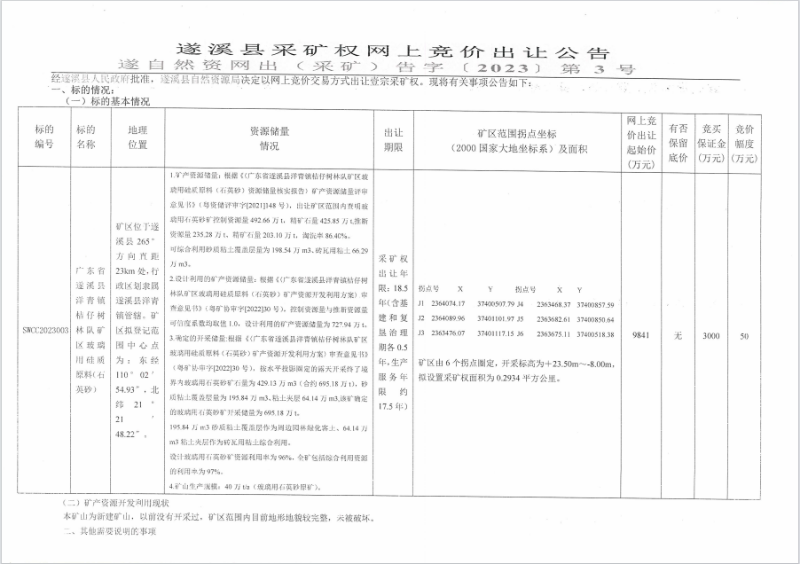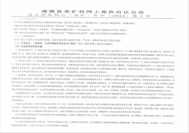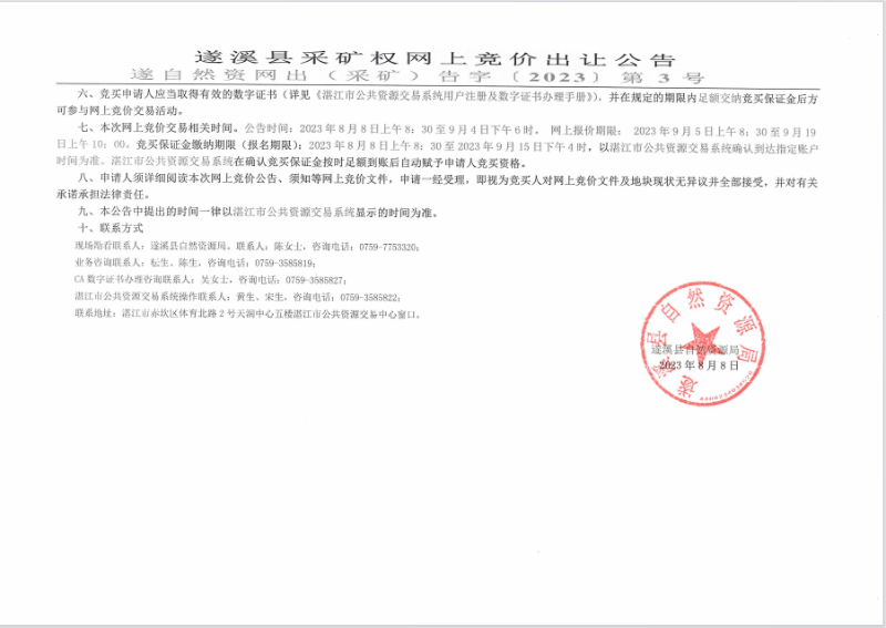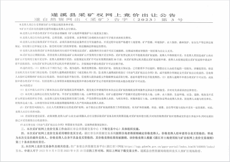 遂溪县采矿权网上竞价出让公告及采矿权网上竞价出让须知