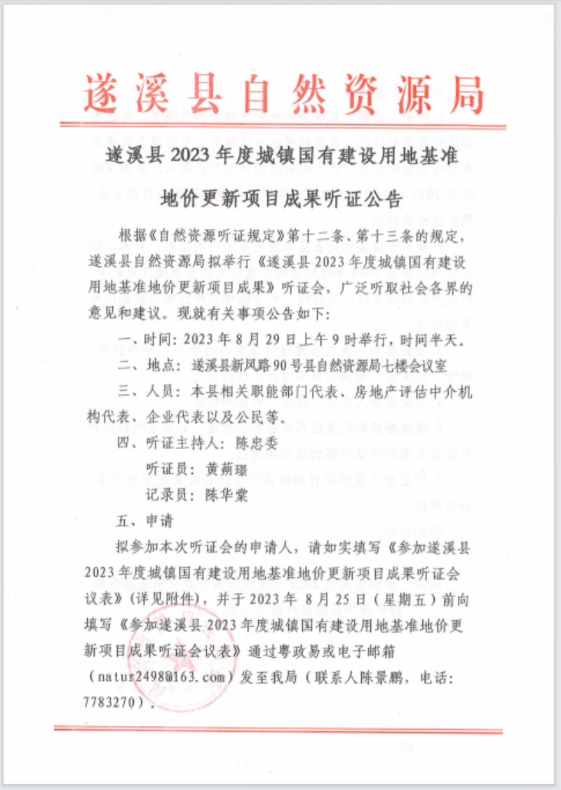 遂溪县2023年度城镇国有建设用地基准地价更新项目成果听证公告