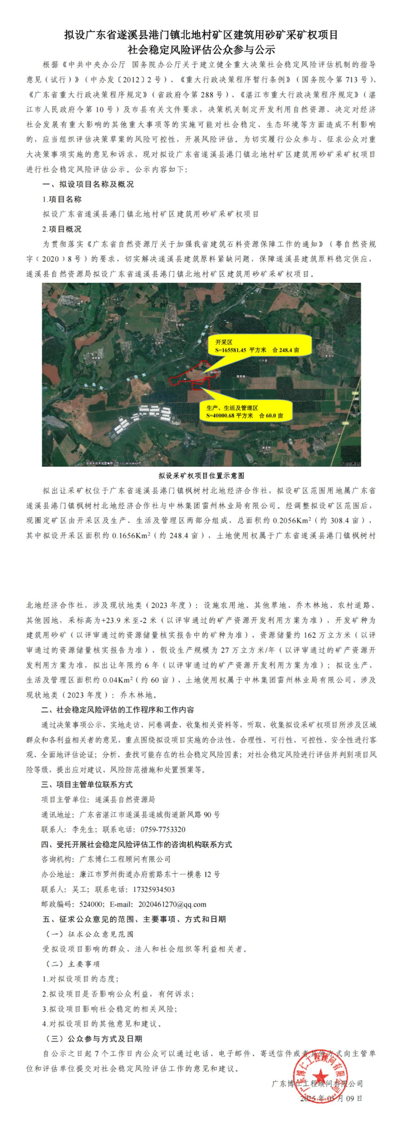 拟设广东省遂溪县港门镇北地村矿区建筑用砂矿采矿权项目社会稳定风险评估公众参与公示