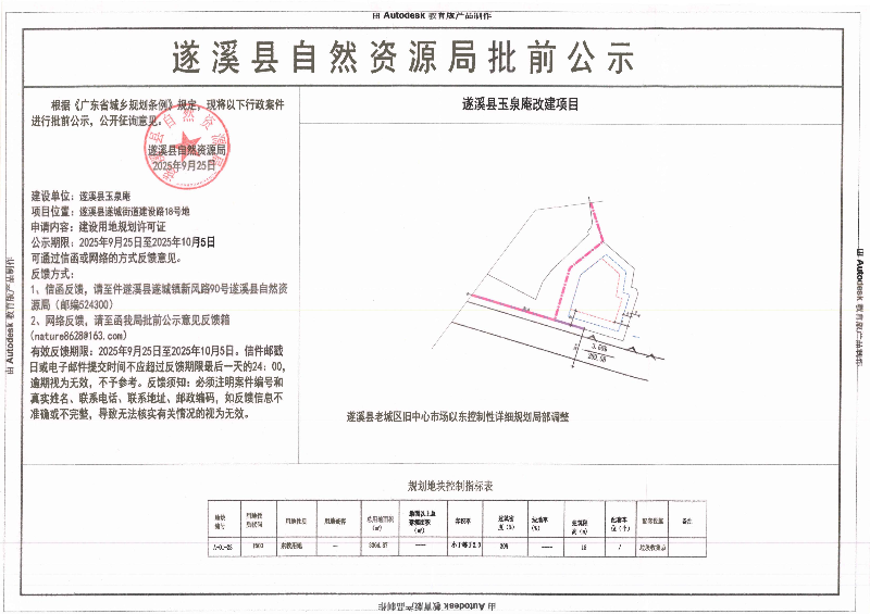 遂溪县玉泉庵改建项目建设用地规划许可证批前公示