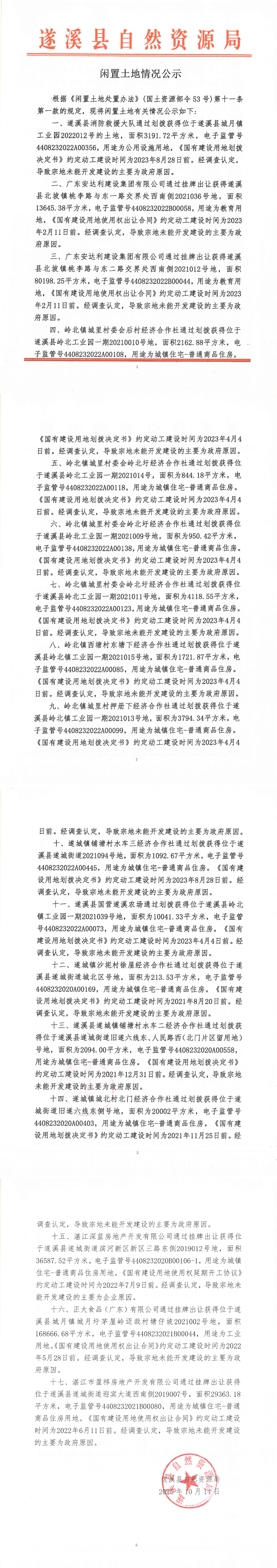 闲置土地情况公示