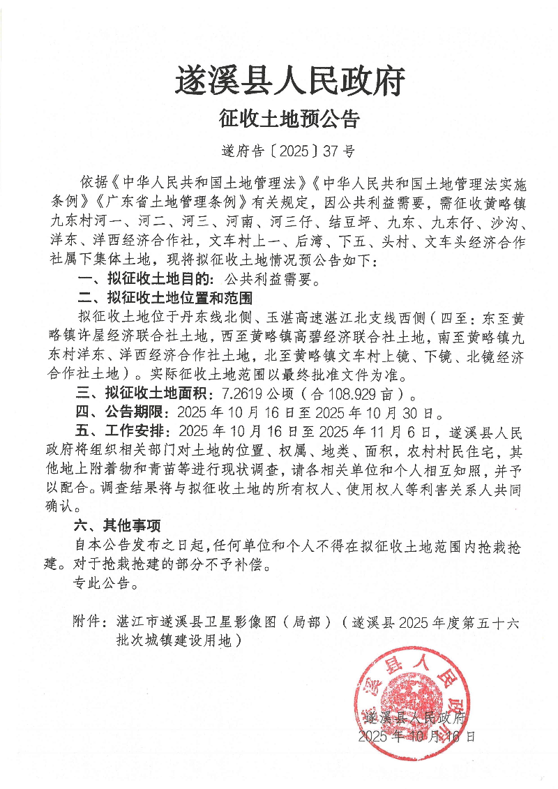 遂溪县人民政府 征收土地预公告 遂府告〔2025〕37号