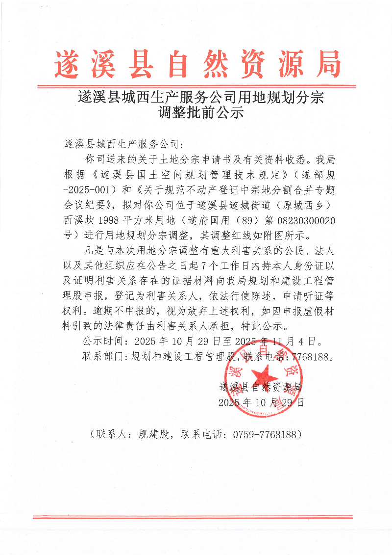 遂溪县城西生产服务公司用地规划分宗调整批前公示