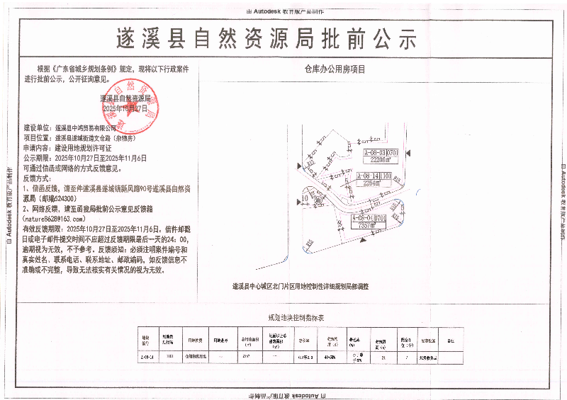 遂溪县中鸿贸易有限公司仓库办公用房项目建设用地规划许可证批前公示