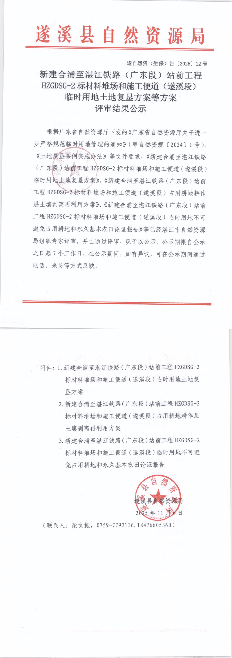 附件3.新建合浦至湛江铁路(广东段)站前工程HZGDSG-2标材料堆场和施工便道(遂溪段)临时用地不可避免占用耕地和永久基本农田论证报告.pdf