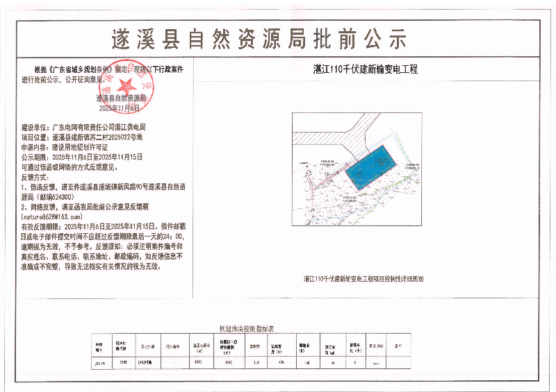 广东电网有限责任公司湛江供电局湛江110千伏建新输变电工程项目建设用地规划许可证批前公示