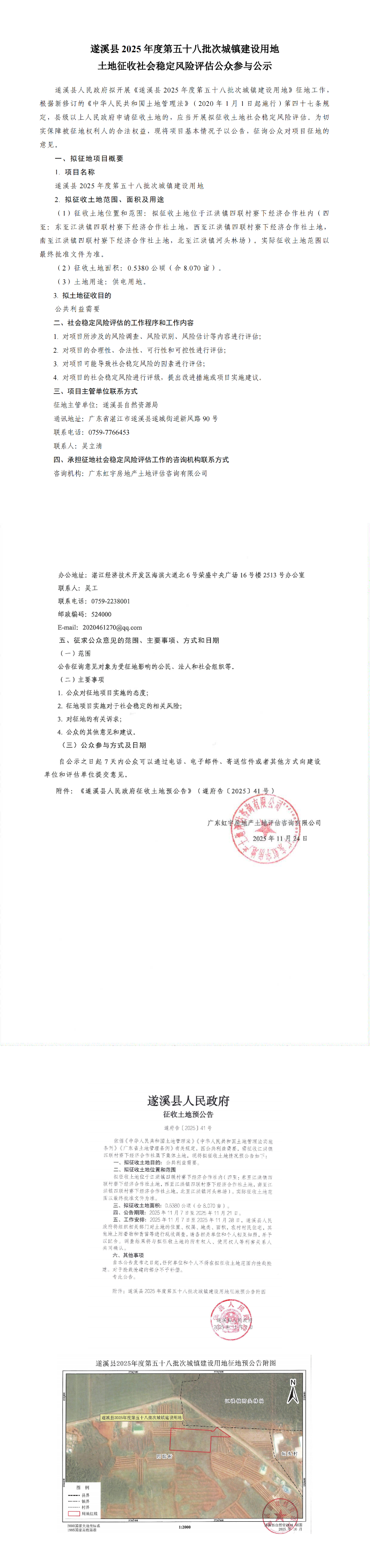 遂溪县2025年度第五十八批次城镇建设用地土地征收社会稳定风险评估公众参与公示