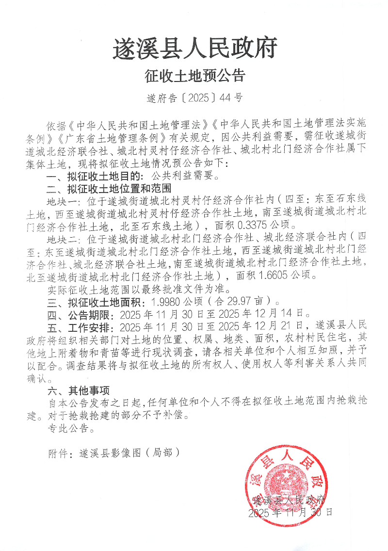 遂溪县人民政府 征收土地预公告 遂府告〔2025〕 44号