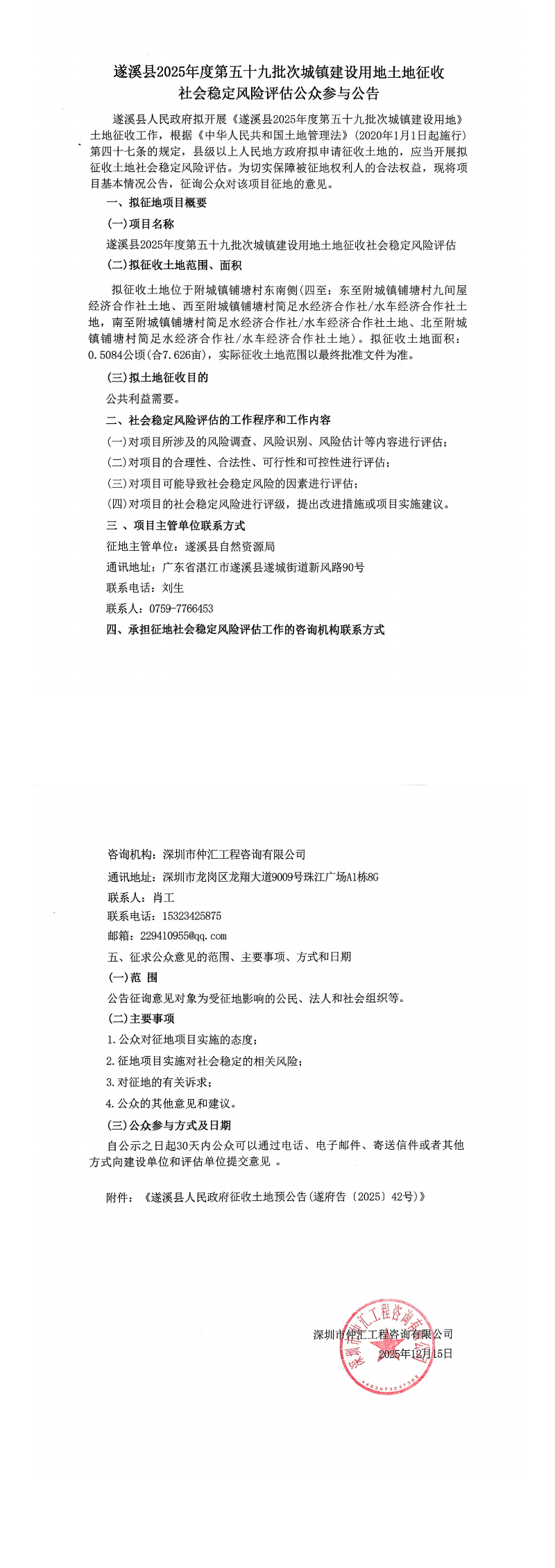 遂溪县2025年度第五十九批次城镇建设用地土地征收社会稳定风险评估公众参与公告