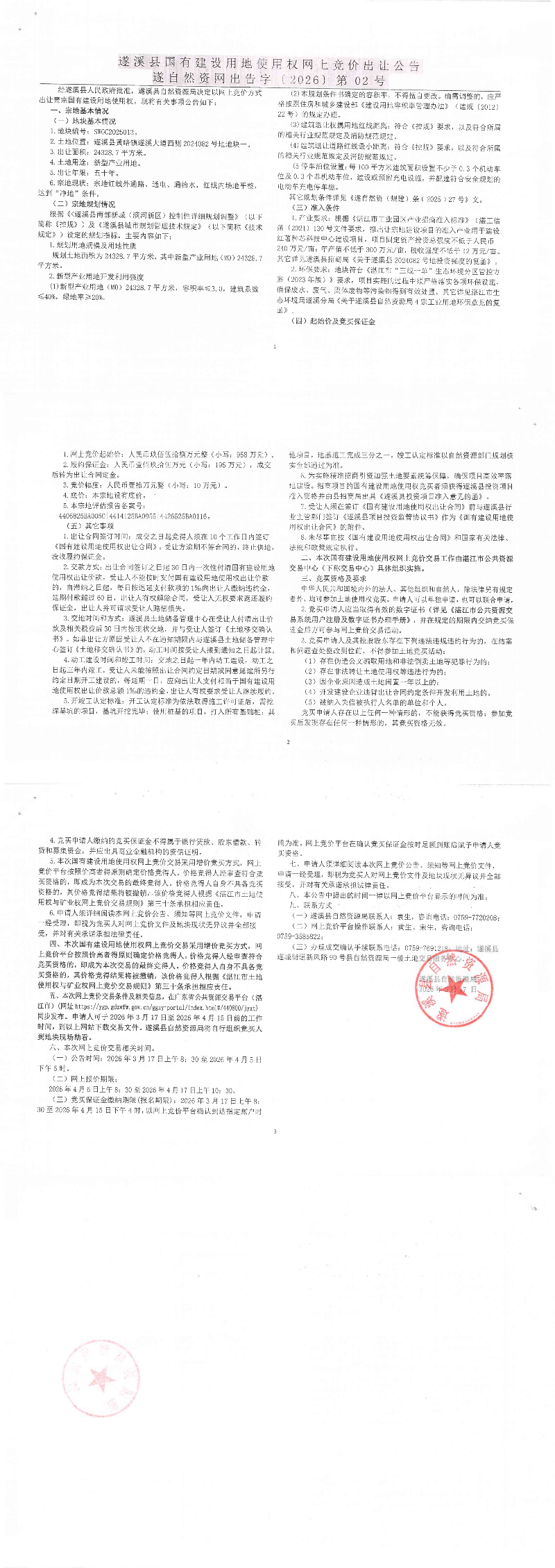 遂溪县国有建设用地使用权网上竞价出让公告遂自然资网出告字〔2026〕第02号.pdf