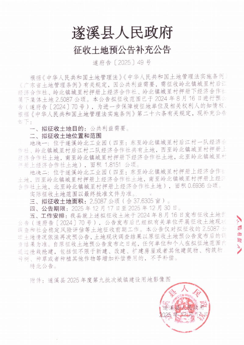 遂溪县2025年度第九批次城镇建设用地土地征收社会稳定风险评估公众参与公示