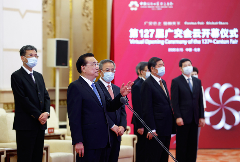 李克强说,我们今天在疫情全球流行期间仍然选择举办云上广交会,确保广交会不中断,这是特殊时期的创新举措,探索了国际贸易发展的新路子,向国际社会表明中国扩大开放、努力维护国际产业链供应链安全的坚定决心。