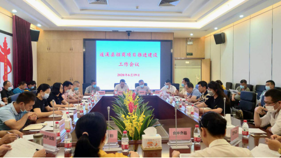 2020年6月19日下午,遂溪县人民政府副县长张闽英在县招商局主持召开遂溪县招商项目推进建设工作会议。县政协副主席、招商局局长陈丽珺,县发改局、自然资源局、住建局、科工贸局、生态环境局、统计局、招商局、行政服务中心、工业园管委会等单位及各有关镇的分管领导和天地壹号等14家企业代表参加了会议。