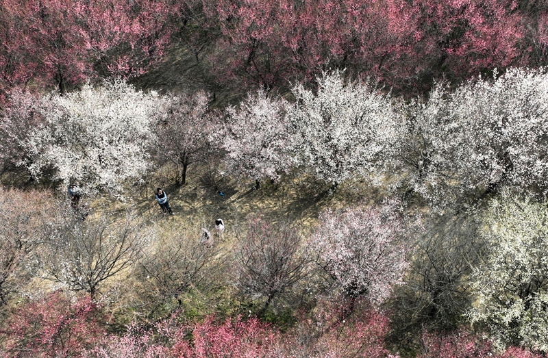 2月26日,人们在河南省驻马店市天中梅园内赏梅。