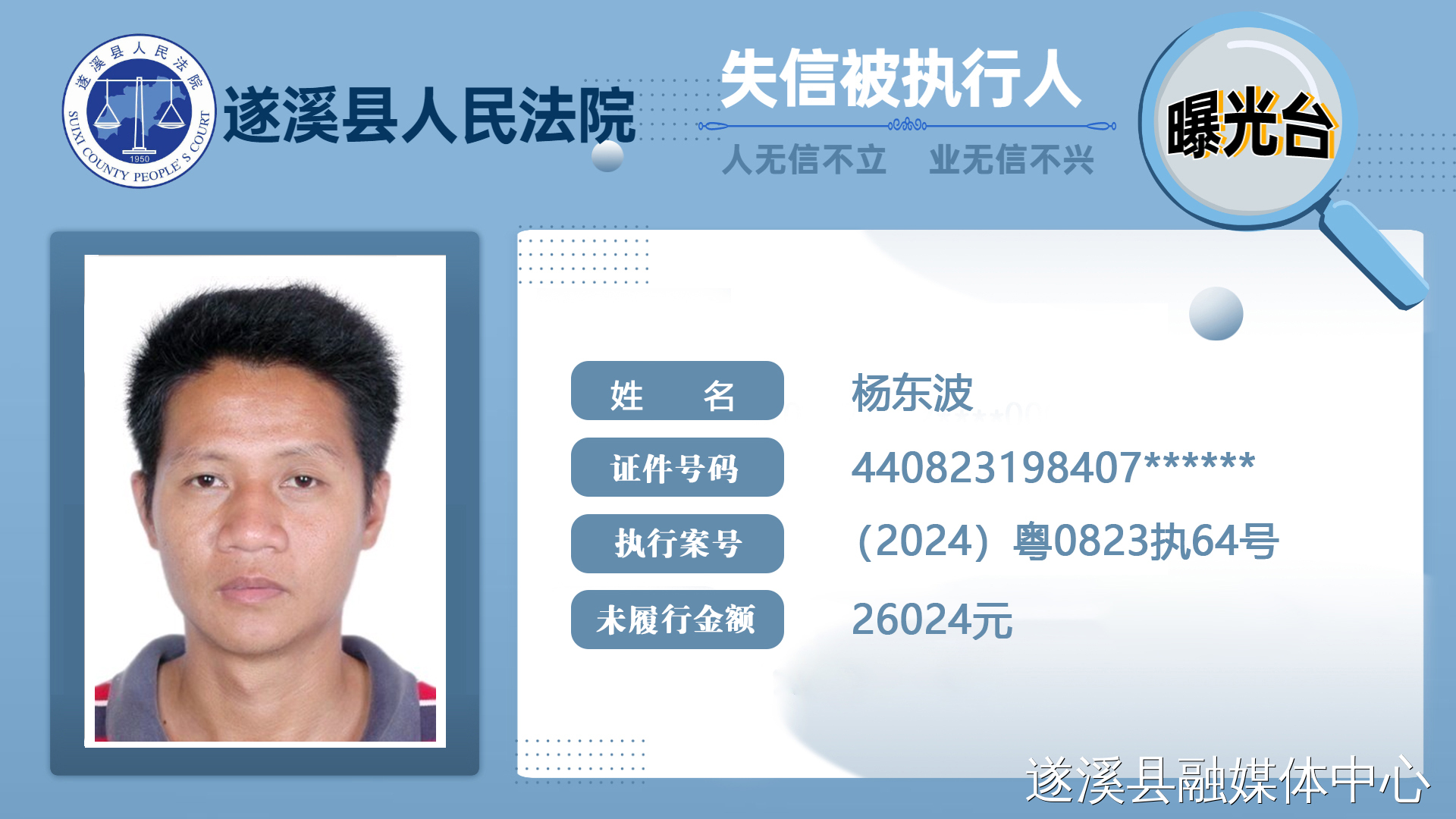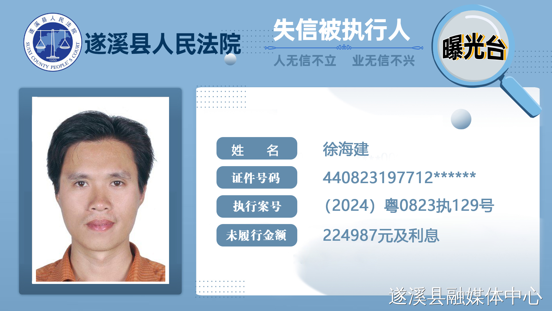 【2024年第二期失信曝光】遂溪法院公布一批失信被执行人名单