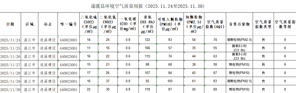 遂溪县环境空气质量周报(2025.11.24至2025.11.30)