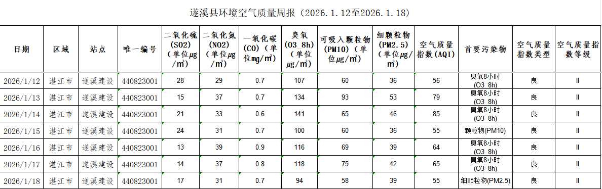 遂溪县环境空气质量周报(2026.1.12至2026.1.18)