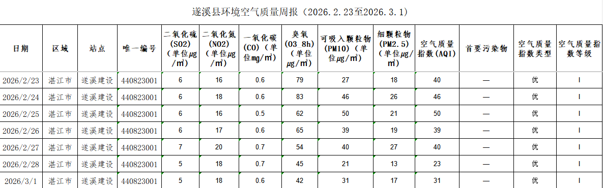 遂溪县环境空气质量周报(2026.2.23至2026.3.1)