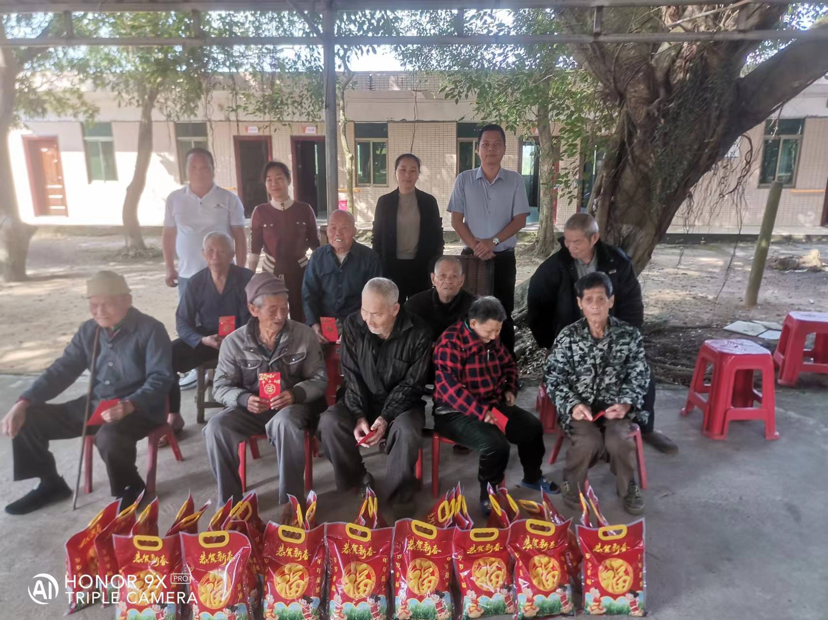 镇党委书记陈燕清为院内孤寡老人送上慰问金