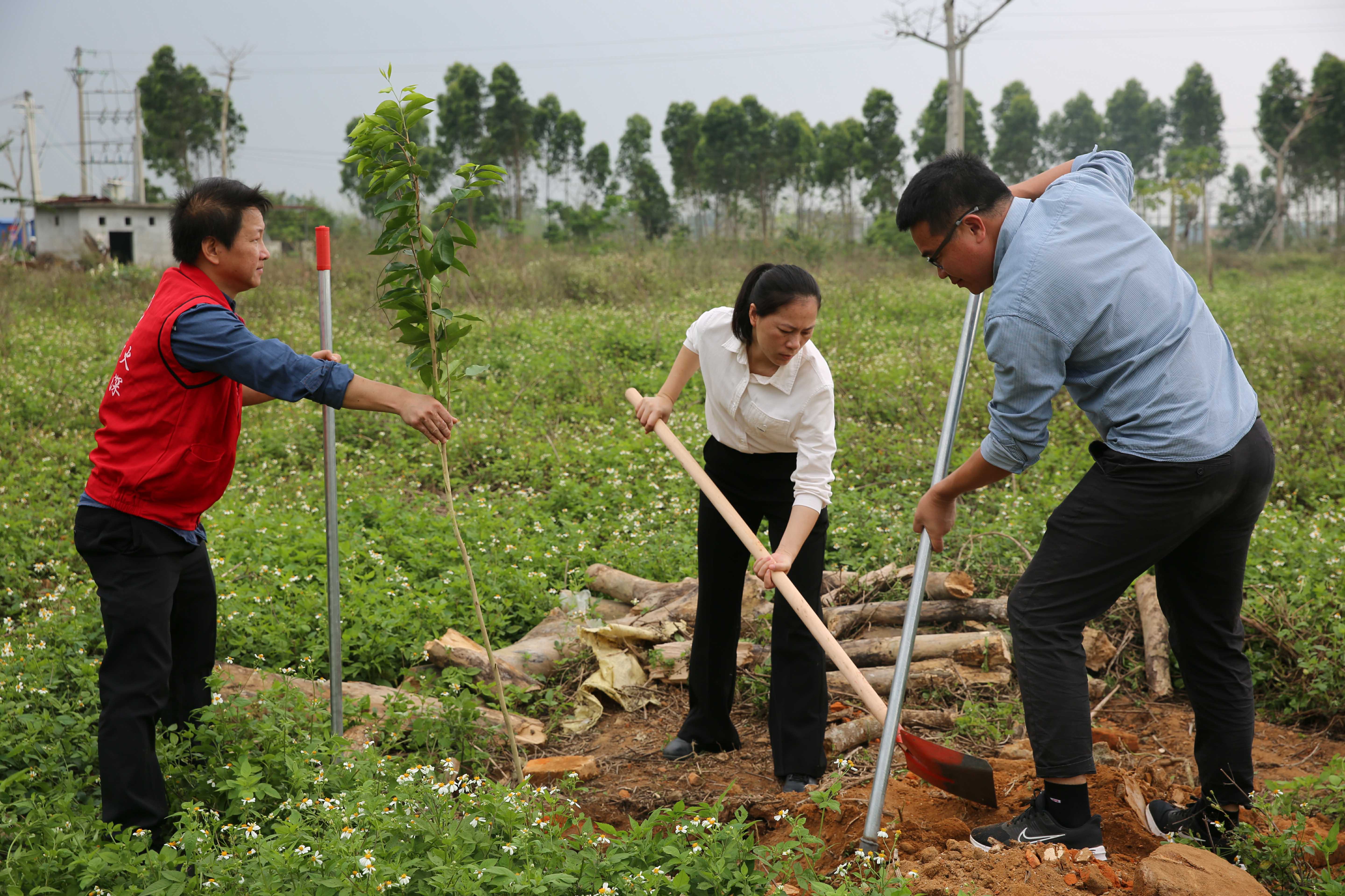 为深入贯彻落实省委、湛江市委关于深入推进乡村绿化的部署要求,南方电网广东湛江供电局积极响应“乡村绿化 党员先行”的号召,结合“百县千镇万村高质量发展工程”和绿美湛江生态建设等重点工作要求,3月27日,南方电网广东湛江供电局党员干部职工到遂溪县北坡镇南渡村委、鹤门村委开展“党建引领 凝心聚“绿”植树护绿行动”。南方电网广东湛江供电局干部职工踊跃认捐认种荔枝、沉香、三角梅树苗共计约1300株,深入推动乡村绿化各项任务落地见效,形成共同参与绿美湛江生态建设的良好局面。北坡镇党委书记陈燕清、镇党委委员劳华文、镇三级主任科员叶晓,村两委干部、南方电网广东湛江供电局职工、驻北坡镇帮扶工作队等一行人员身体力行、组团合作,有序细致地完成植树各个环节。