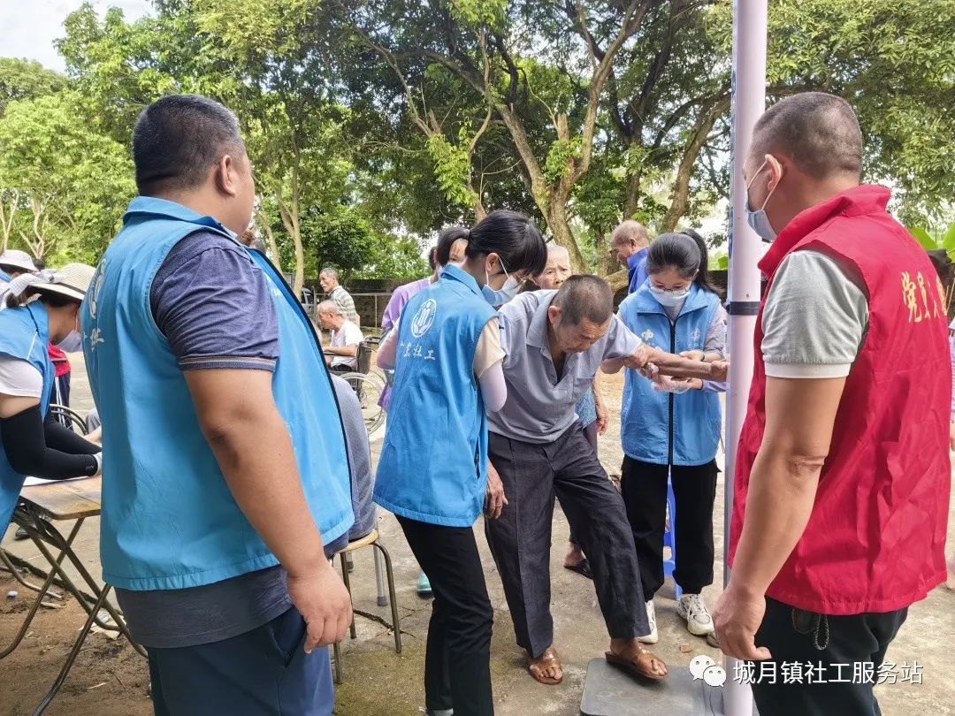 2023年7月9日,城月镇社会工作服务站携手遂溪县第二人民医院、广东医科大学第一临床医学院一鸣九霄志愿服务队在城月镇敬老院为老人开展体检活动。