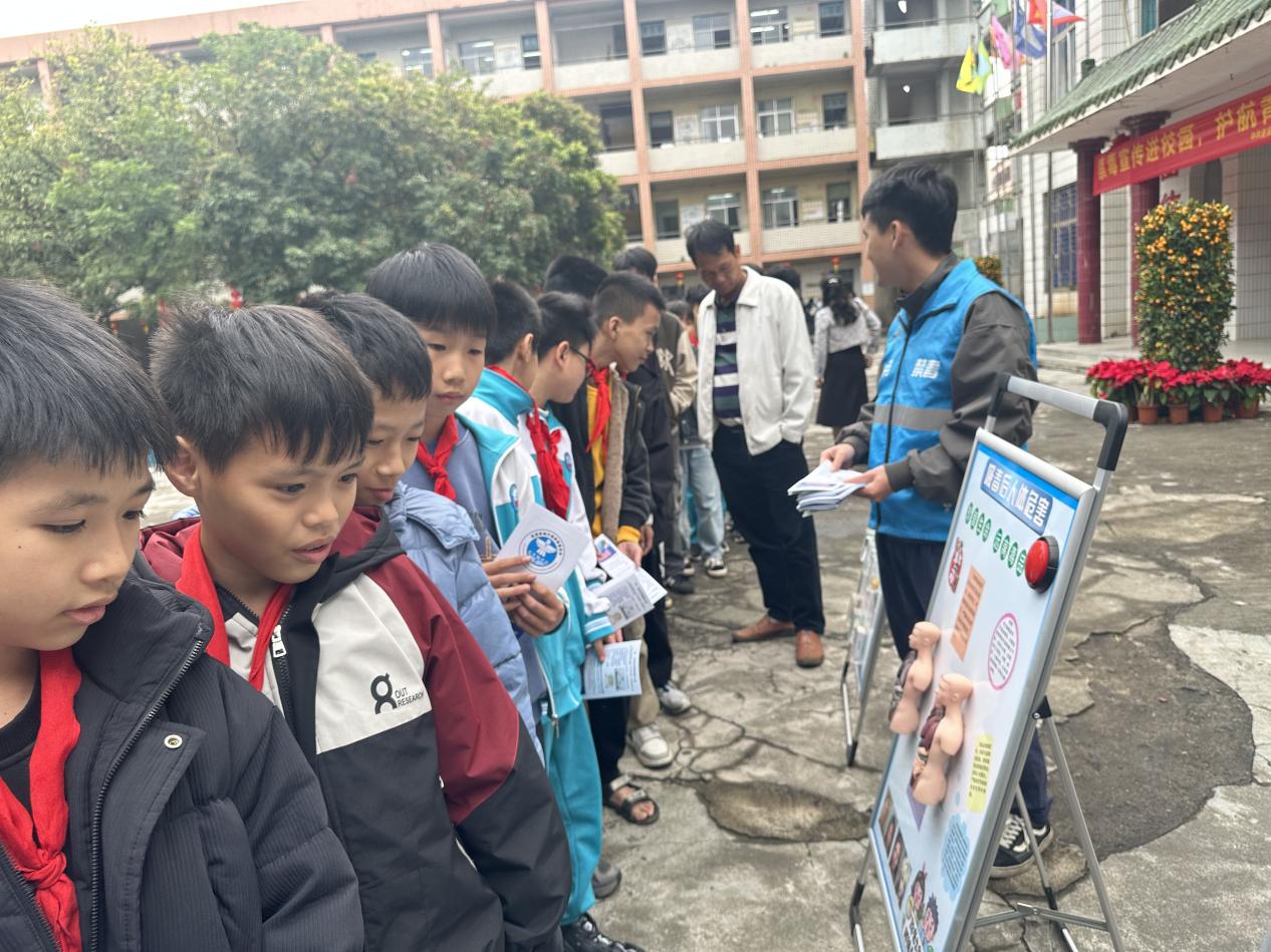 为深入推进青少年毒品预防教育,筑牢校园禁毒安全防线,3月4日,城月镇禁毒办联合镇党建办、镇妇联、司法所、派出所走进城月中心小学,以春季开学为契机,组织开展“开学第一课 护航青春无毒行”禁毒主题宣传活动。活动聚焦“上头电子烟”等新型毒品防范知识普及,旨在引导广大学生远离电子烟、识别新型毒品伪装,共建平安健康校园。